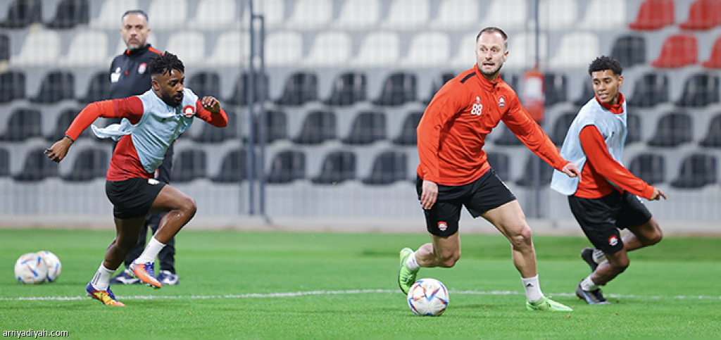 صورة التقطت أمس للكرواتي داميان دوكوفيتش، لاعب وسط الرائد، ينطلق بالكرة في مناورة ضمن حصة تدريبية على ملعب النادي (المركز الإعلامي- الرائد)