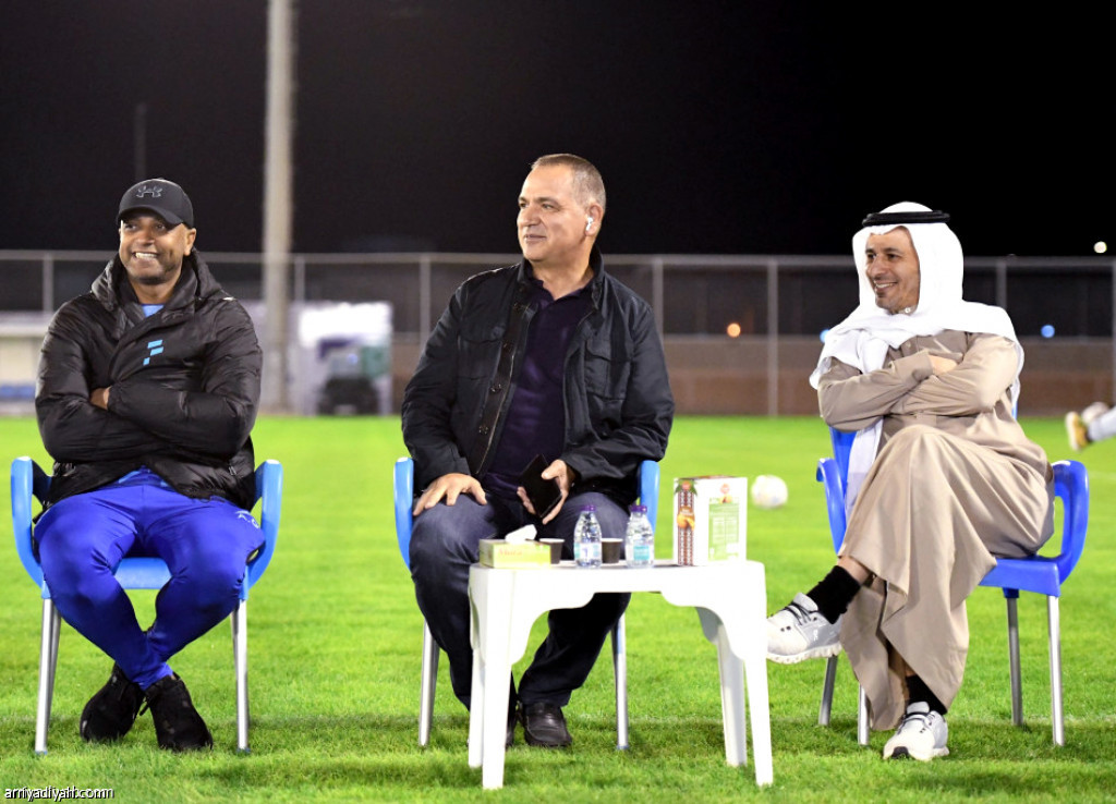 صورة التقطت أمس لسعد العفالق، رئيس نادي الفتح، والتونسي فتحي الجبال، مدرب الفريق السابق، يتابعان الحصة التدريبية (المركز الإعلامي - الفتح)
