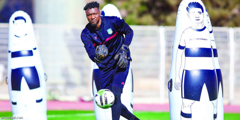 صورة التقطت أمس للنيجيري أوده مارشالو، حارس مرمى فريق العين الأول لكرة القدم، يمرر الكرة خلال الحصة التدريبية (المركز الإعلامي ـ العين)